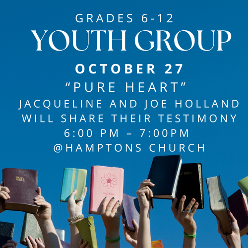 Our Youth Group meets every other Friday at 6:00 pm at Hamptons Church. These events are for students in 6th grade through 12th grade.
